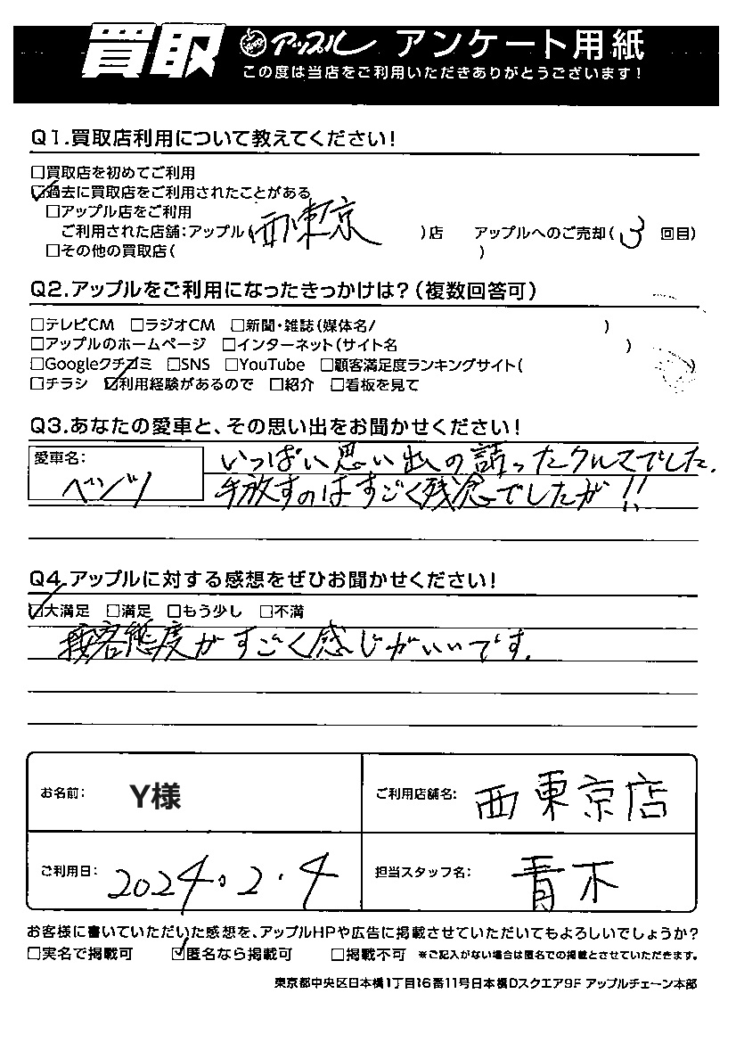 Y様 車名:メルセデス・ベンツ