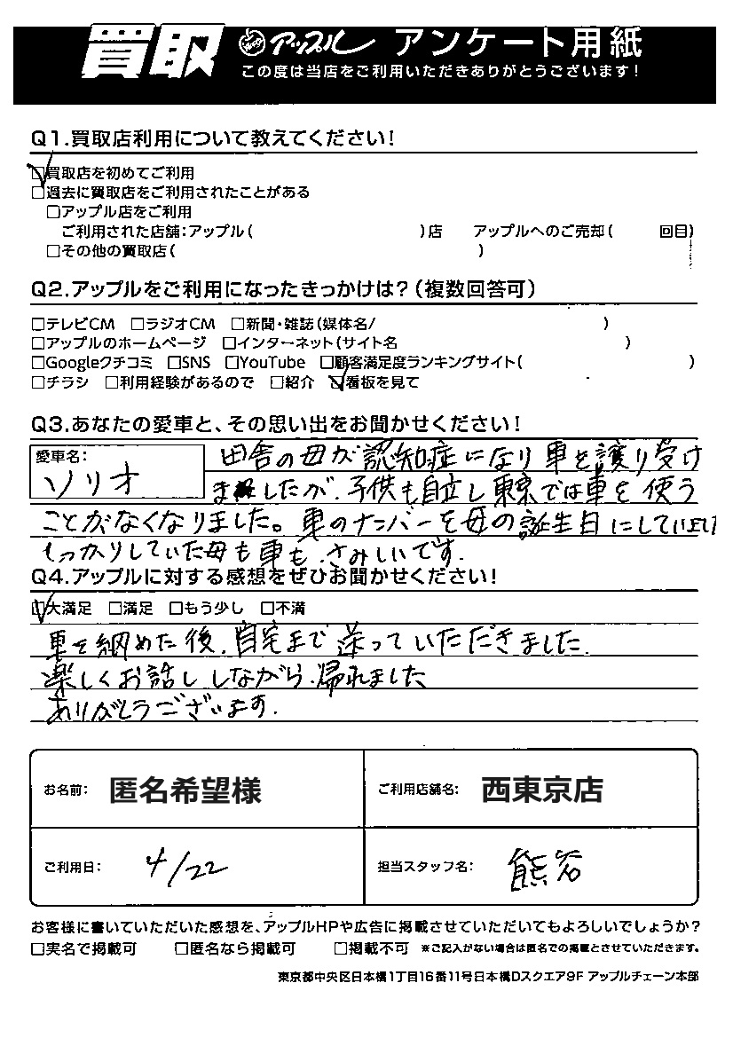 A:田舎の母が認知症になり、車を譲り受けましたが、子供も自立し東京では車を