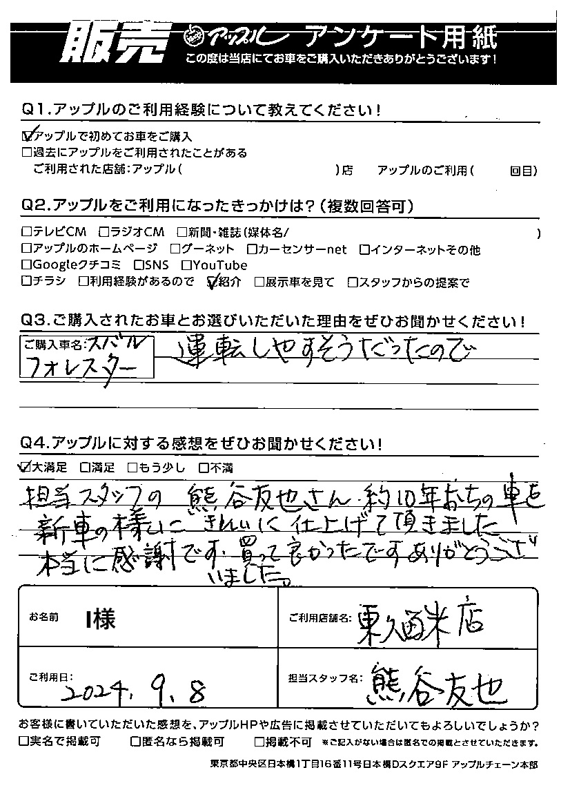 I様 車名:スバル フォレスター