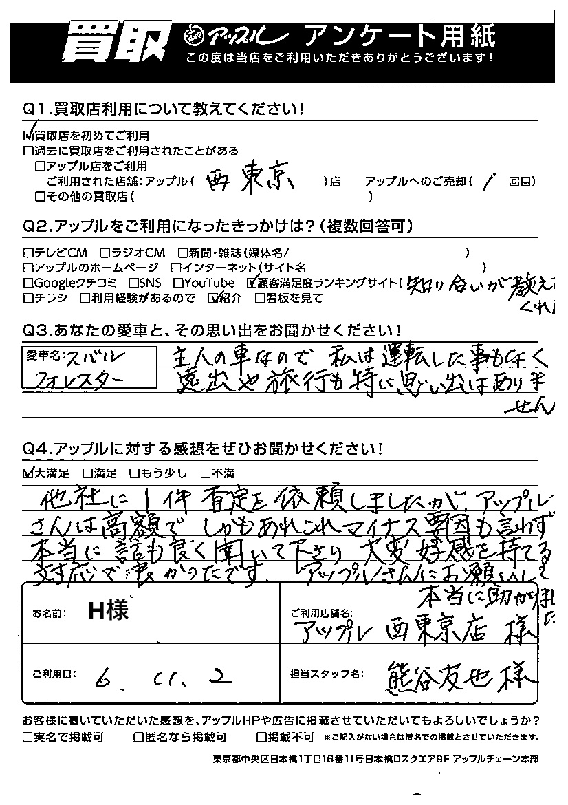 H様 車名:スバル フォレスター