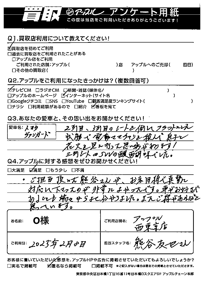 O様 車名:トヨタ ヴァンガード