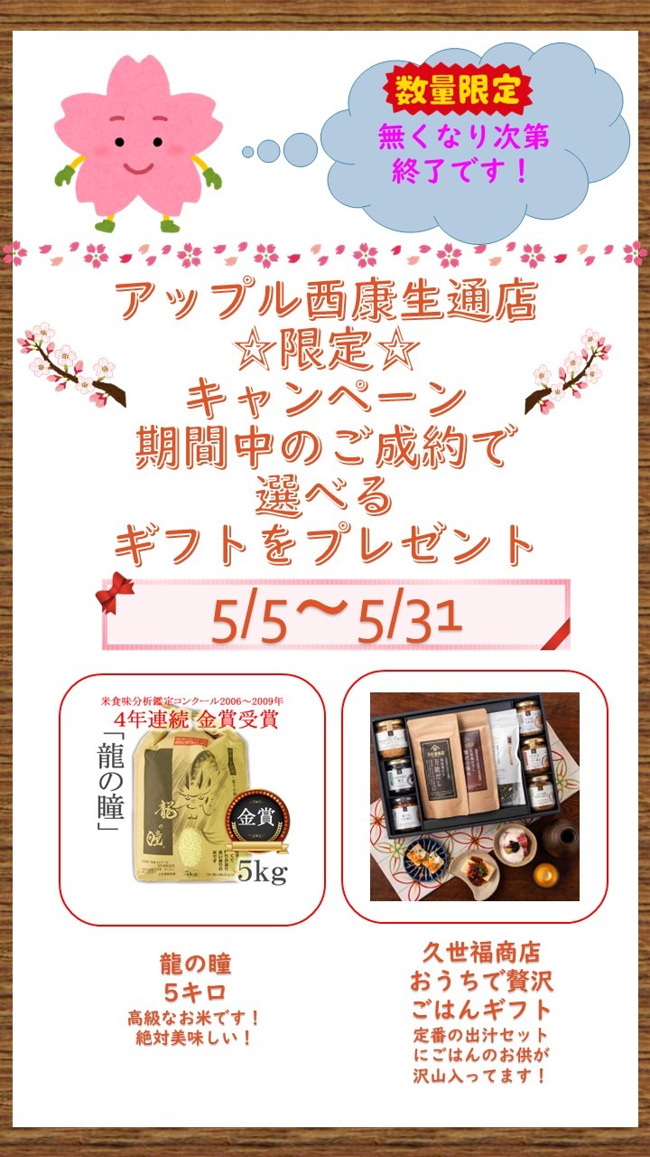 リニューアルオープン記念!第二弾!アップル西・康生通店独自キャンペーン!