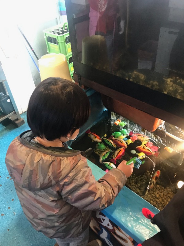 子供が飽きないように無料の磁石で釣るおもちゃの釣り堀もあり