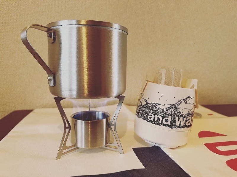 アルコールストーブを使いお湯を沸かしてコーヒーを作りながら