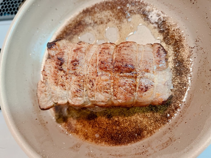 次にフライパンで焼き目を入れていきます~(´・ω・`)