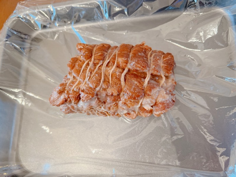 続いてはお肉に塩をまとわせてタコ糸で巻いていきます☆
