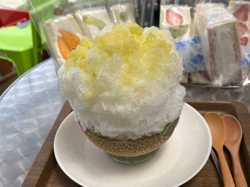 メロンは半玉の上にかき氷とメロンの果肉が沢山乗っており