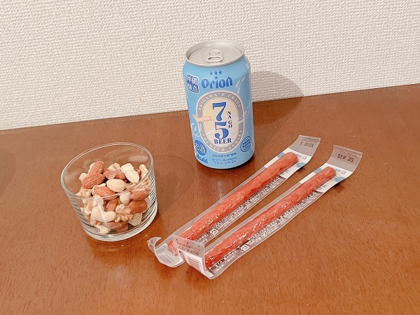 こちらは帰宅が遅くなってので簡単にミックスナッツとサラミ(パブスティック)♪