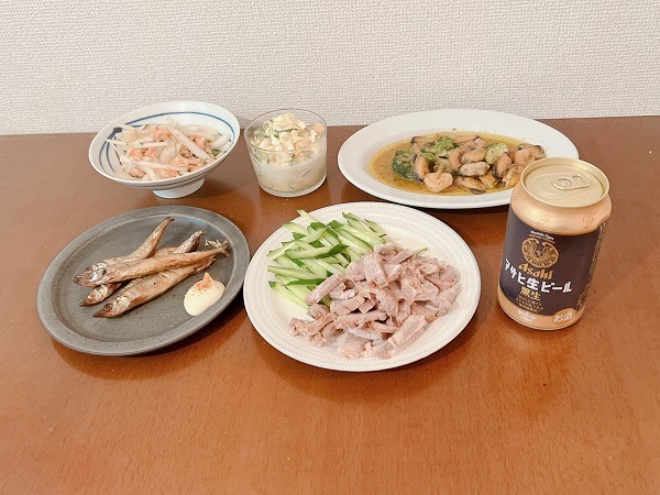 夕ご飯代わりに肴とお酒を頂くようにしています☆