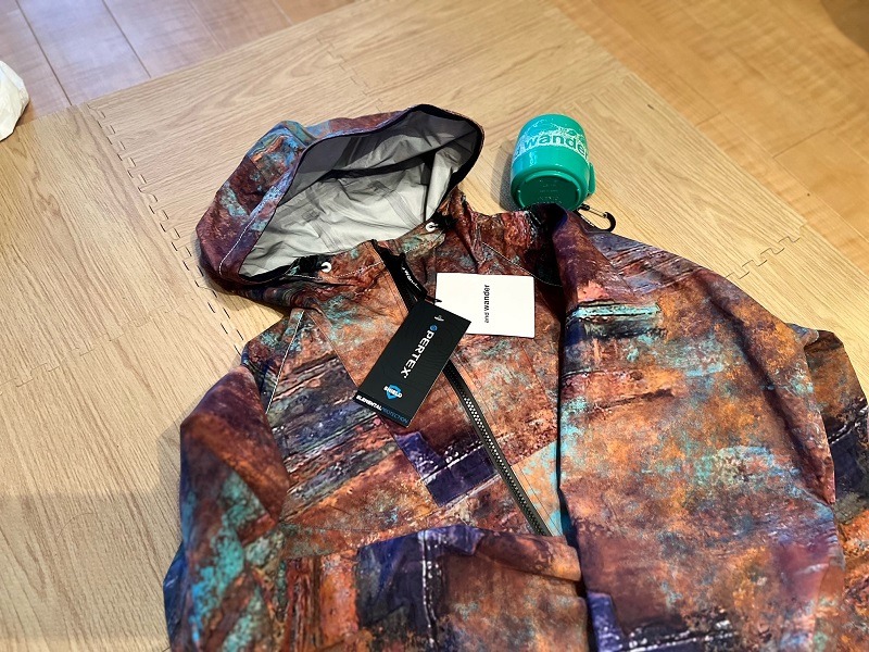 通常のレインジャケットやマウンテンパーカーにはなかなか無い柄と配色がお気に入りです(^^♪