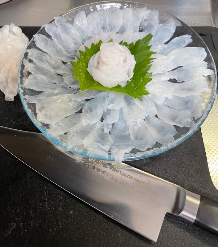 丁度、届いた前日にフグを釣りに行っていたのでてっさにしてみましたよ