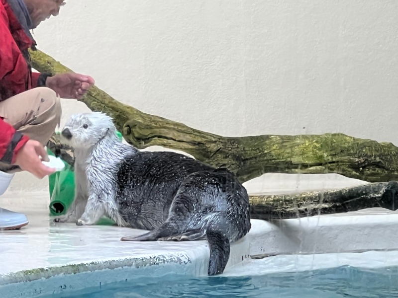 ラッコの飼育スペースの前には