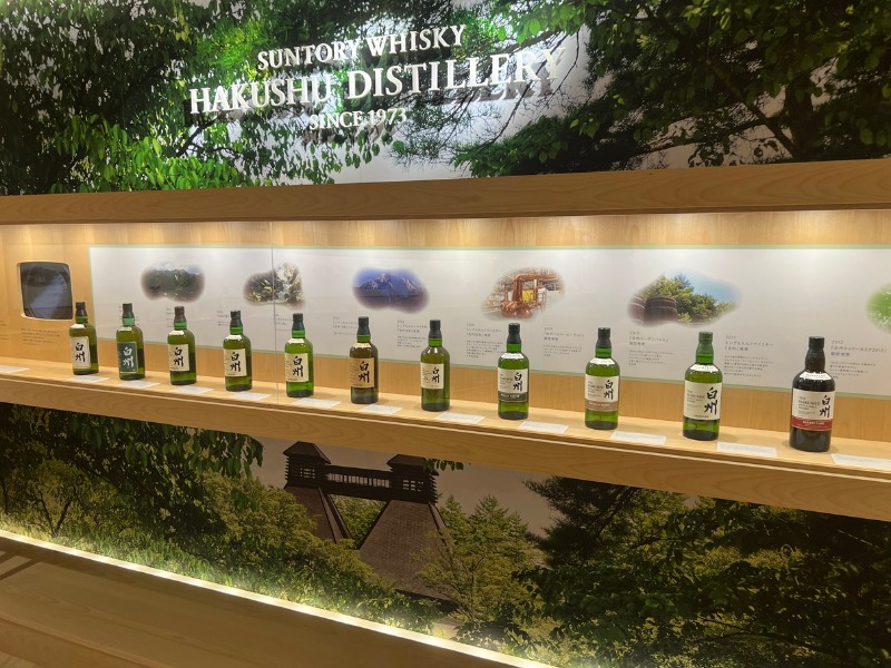 白州蒸留所の歴史や、実際のウイスキー樽の展示