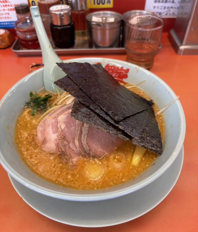 濃厚な味噌とんこつでおろしにんにくを入れるとうまさ倍増です・・・(>_<)