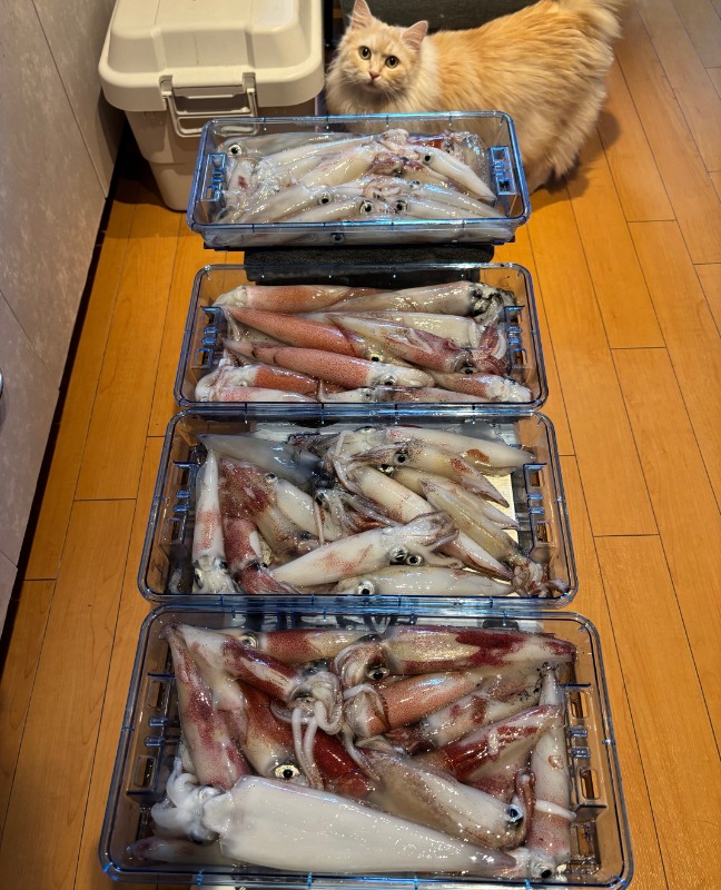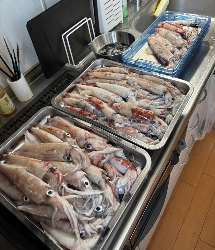 釣ったイカは墨袋と内臓を専用のフォーセップで抜いてそのまま冷凍庫へ~