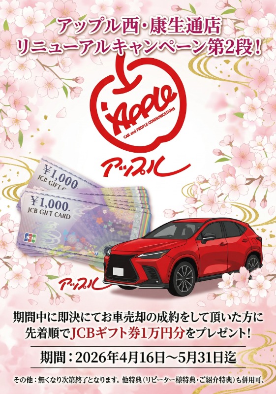 このお得な期間に是非、お車の査定にいらして下さいね(^^)/