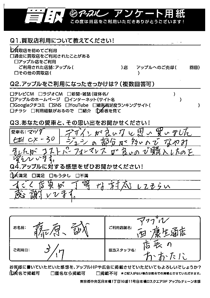 藤原 誠様 車名:マツダ CX-30