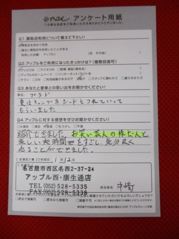 アップル西康生通店より:楽しい時間を過ごせて頂き何よりです!岡本様からの紹介も是非!お待ちしております!