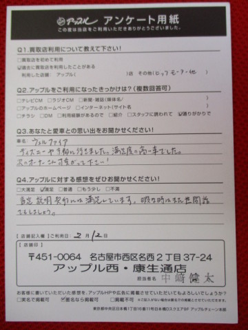 アップル西康生通店より:ご満足頂けて何よりです!ぜひいつでも世間話がてらお店に遊びに来てください!
