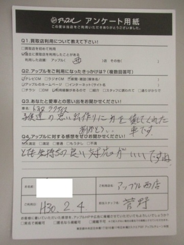 お車のご相談・ 査定だけでもOK! カンタン 入力 30秒 アップルがブランド買取始めました! お電話でも受付中! 受付時間 10:00 ~ 19:00 052-528-5335 お車のご相談・ 査定だけでもOK! カンタン 入力 30秒 アップルがブランド買取始めました! お電話でも受付中! 受付時間 10:00 ~ 19:00 052-528-5335 アップルがブランド買取始めました! お電話でも受付中! 受付時間 10:00 ~ 19:00 052-528-5335 店舗情報 在庫車 スタッフ紹介 ブログ お客様の声 キャンペーン お得 無料査定 click お客様の声 ご記入日: 2018/02/04 匿名様 車名 ラクティス思い出 子供達の思い出作りに力を貸してくれた車です。ありがとう感想 とても気持ちの良い対応がいいですね。 前へ 次へ お客様の声一覧を見る