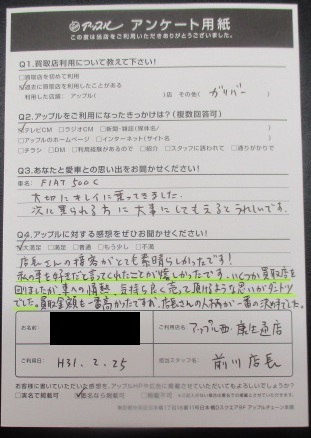 いくつか買取店を回りましたが、車への情熱、気持ちよく売って頂けるような思いがダントツでした。