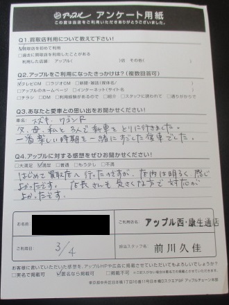 思い出:父、母、私と3人で新車を取りに行きました。