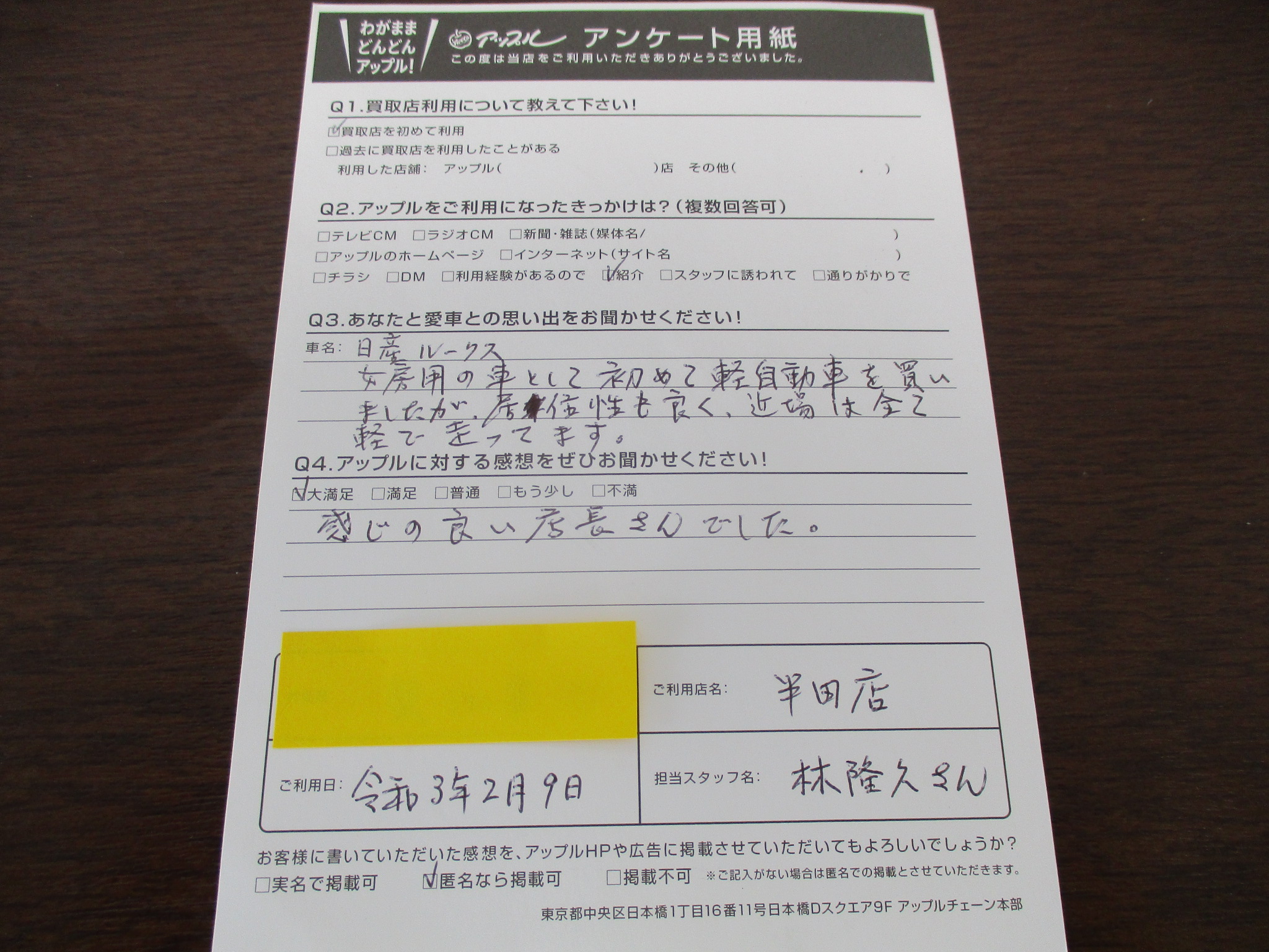 Qアップルに対する感想をお聞かせください。