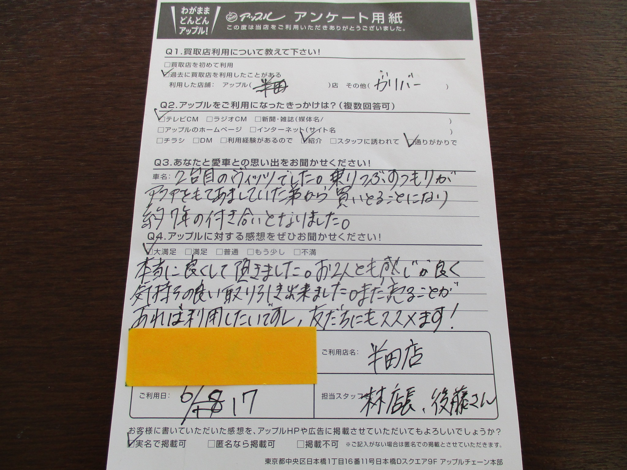 T様 今回は、ご利用いただきありがとうございます。是非!お友達、ご家族の方にもススメてくださいネ!あっ、アクアも査定してましたね。(笑)今後とも宜しくお願い致します。