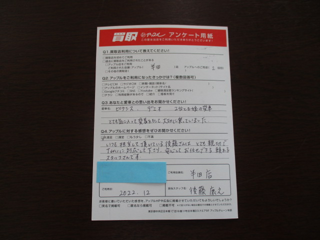 お車のご相談・ 査定だけでもOK! カンタン 入力 30秒 アップルがブランド買取始めました! お電話でも受付中! 受付時間10:00 ~ 19:00 0569-32-3211 お車のご相談・ 査定だけでもOK! カンタン 入力 30秒 アップルがブランド買取始めました! お電話でも受付中! 受付時間10:00 ~ 19:00 0569-32-3211 アップルがブランド買取始めました! お電話でも受付中! 受付時間10:00 ~ 19:00 0569-32-3211 店舗情報 在庫車 スタッフ紹介 ブログ お客様の声 キャンペーン 無料査定 click お客様の声 ご記入日: 2022/12/10 知多郡 I様 車名:トヨタ ピクシススペース I様いつもありがとうございます。大満足を頂きありがとうございます。お車の事なら何でも相談して下さい。またのご来店お待ちしております。ありがとうございました。 前へ 次へ お客様の声一覧を見る