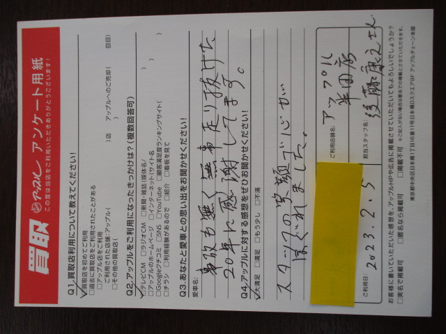 20年間大事に乗られたお車をご売却頂きありがとうございました。