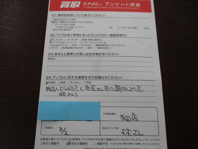 担当してくれた方と店長さん共に親切でした。