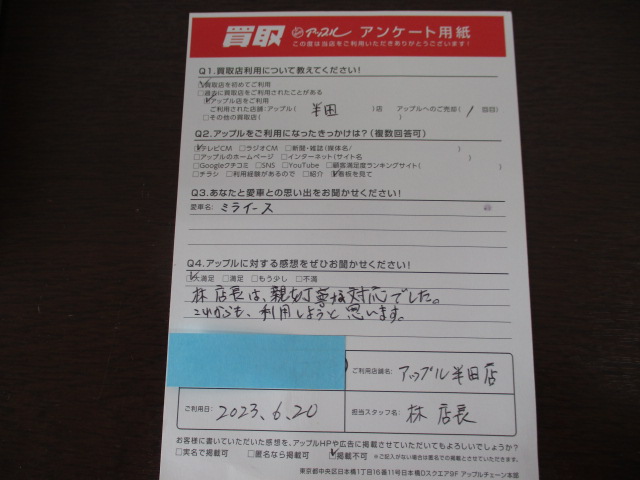 林店長は、親切丁寧な対応でした。これからも、利用しようと思います。