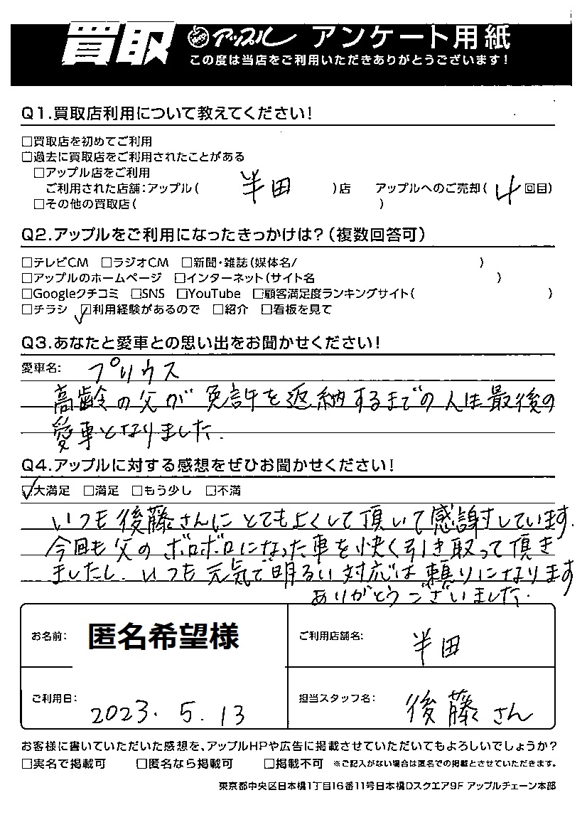 ご利用日:2023年5月13日 担当:後藤
