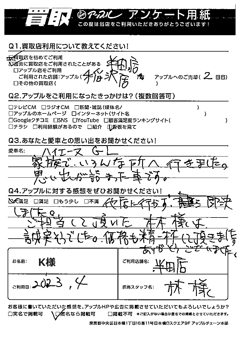 愛車名:ハイエースGL 家族でいろんな所へ行きました。