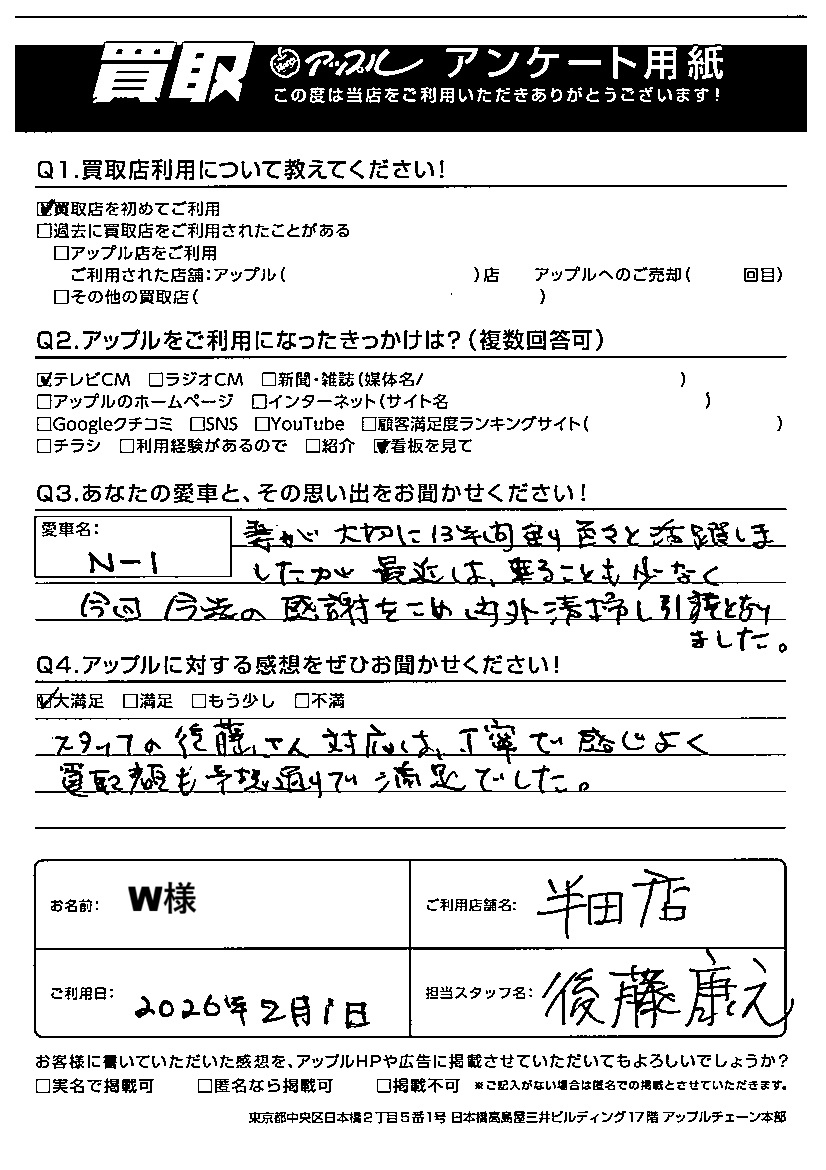 スタッフの後藤さん対応は丁寧で感じよく買取額も予想通りで満足でした。