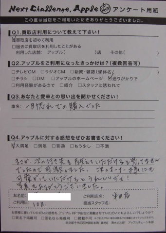 まさか、次の行き先を教えていただけると思ってませんでしたので感激しました。次のオーナー様にも可愛がっていただけるとうれしいデス!写真もありがとうございました。