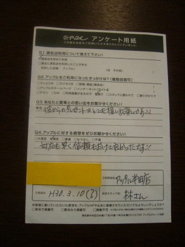 対応も早く信頼もおけて良かったです。