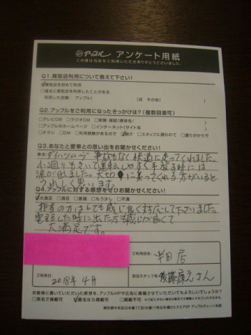事故も無く快適に走ってくれました。小廻りもきいて運転しやすく 手放す時には、涙がでました。大切に乗ってくれる方がいると嬉しく思います。