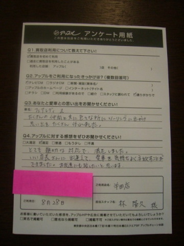 いい店長さんに出逢えて、愛車を気持ち良く手放すことができました。お友達にも、話したいと思います。