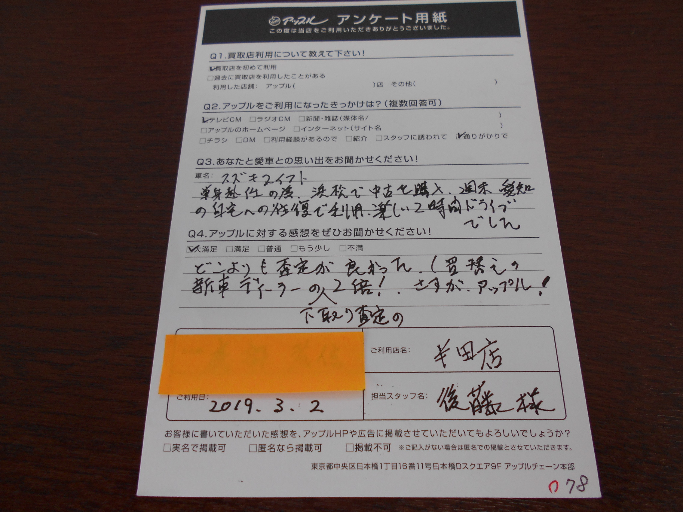 大満足 どこよりも、査定が良かった(買い替えの新車ディーラーの下取り査定の2倍!)さすが!アップル