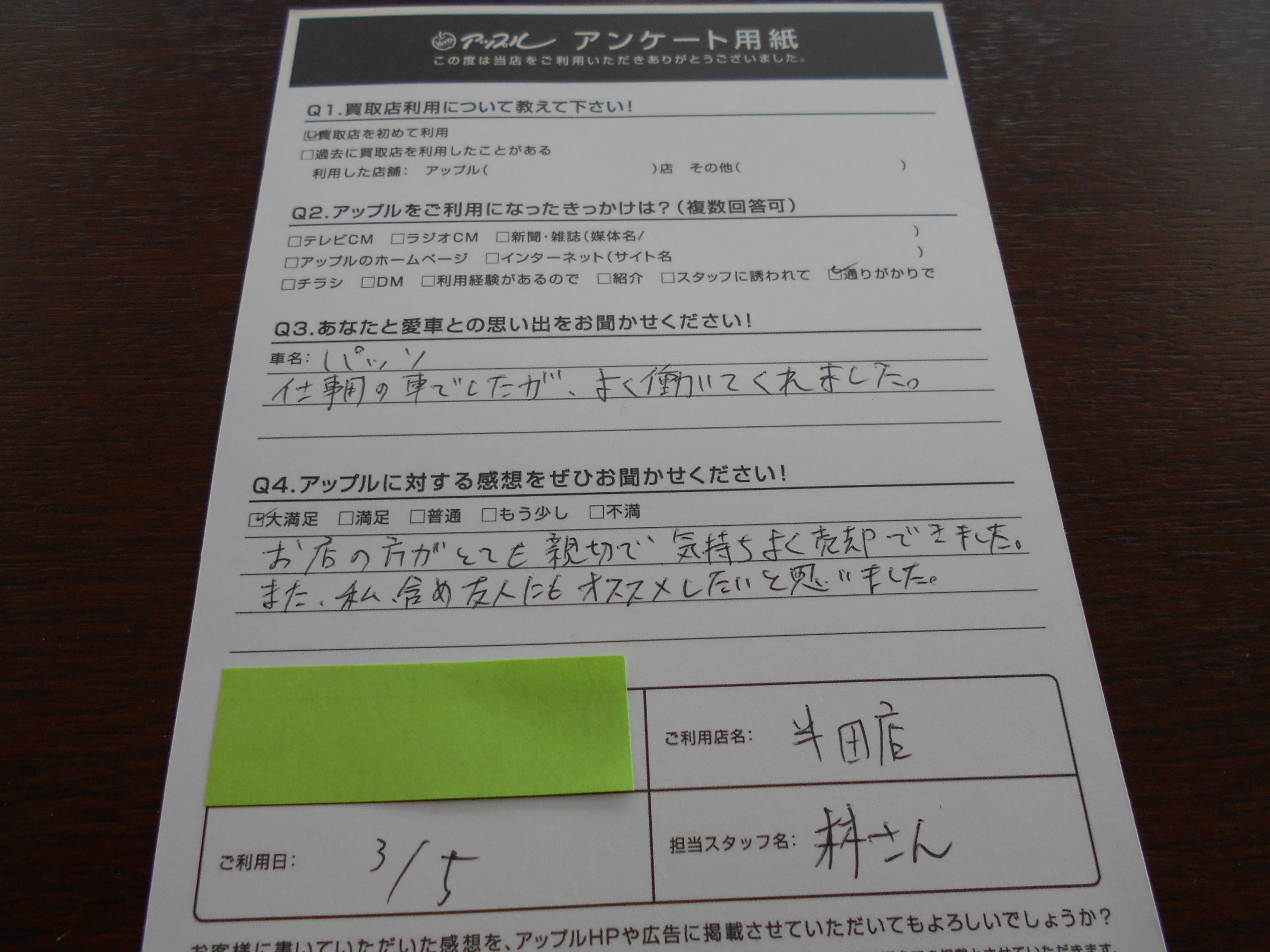 A様 車名:トヨタ パッソ