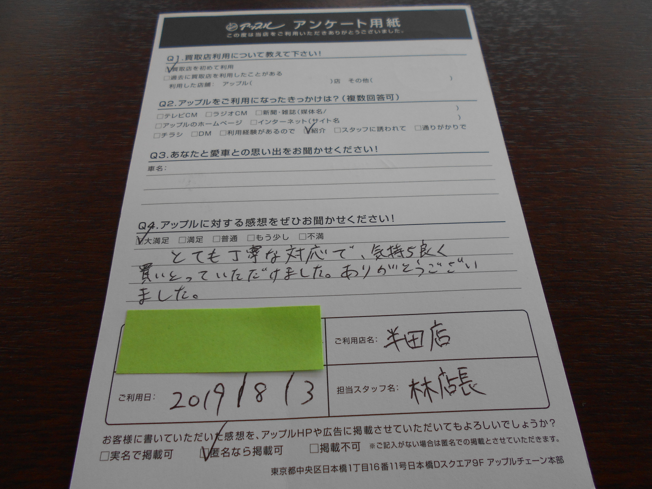 A 大満足 とても丁寧な対応で、気持ち良く買い取っていただけました。