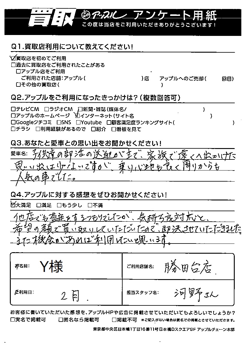 他店でも査定をするつもりでしたが、気持ち良い対応と
