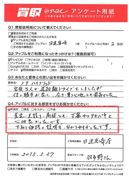 お車のご相談・ 査定だけでもOK! カンタン 入力 30秒 アップルがブランド買取始めました! お電話でも受付中! 受付時間09:30 ~ 18:30 0561-75-6616 お車のご相談・ 査定だけでもOK! カンタン 入力 30秒 アップルがブランド買取始めました! お電話でも受付中! 受付時間09:30 ~ 18:30 0561-75-6616 アップルがブランド買取始めました! お電話でも受付中! 受付時間09:30 ~ 18:30 0561-75-6616 店舗情報 在庫車 スタッフ紹介 ブログ お客様の声 キャンペーン お得 無料査定 click お客様の声 ご記入日: 2023/03/27 N様 車名:トヨタ ノア 満足度★★★★★査定・見積り・商談とも、丁寧かつテキパキと心地良かったです。下取り価格の説明も分かりやすかったです。 前へ 次へ お客様の声一覧を見る
