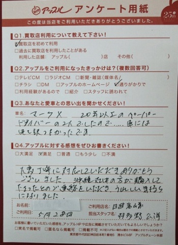 沖縄在住の方が購入して下さったとのご連絡をいただき