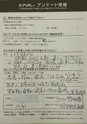 店長の対応 最高(他4社より)ベター