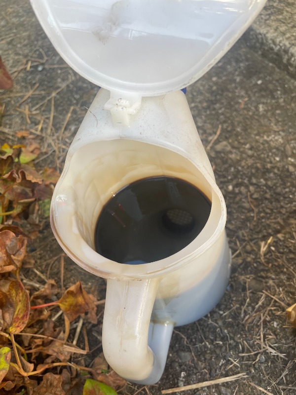 まずは10mmソケットでオイルドレンを外して、慎重にオイルを抜きます。