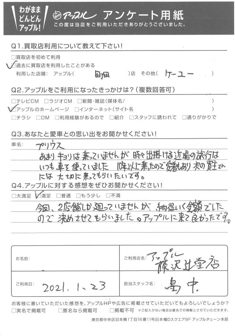 Y様 車名:トヨタ プリウス(2023年3月~のPHVを含む)