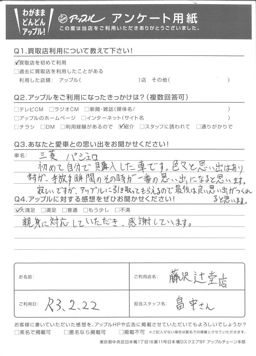 U様 車名:三菱 パジェロ