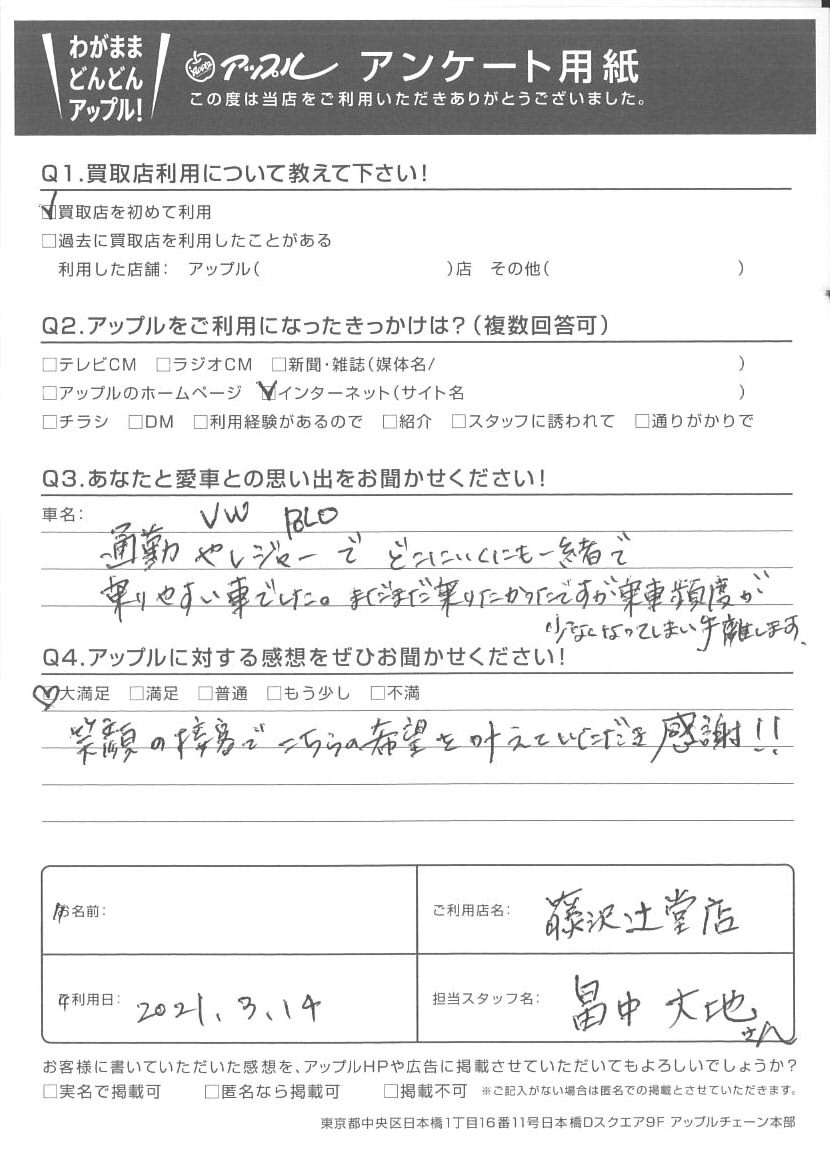 A様 車名:フォルクスワーゲン ポロ